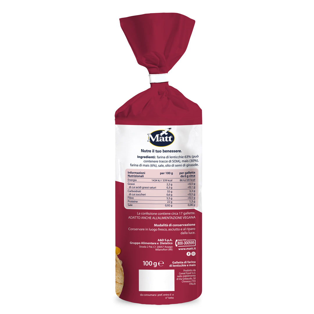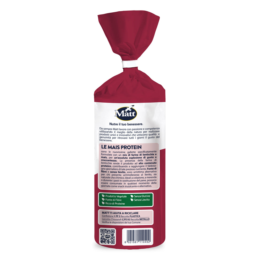 Organic Corn Protein Cakes are a brand-new product formulated specifically with a mix of lentil flour and corn for an absolute explosion of flavor and crunchiness. The presence of lentil flour gives the product a high protein content that helps reach the daily recommended intake for that nutrient. Rich in fiber and yeast free, it is an excellent alternative in the case of yeast intolerance, whether natural or chemical. Ideal for breakfast, break time or during meals as a bread substitute, they are a tasty snack that can be enjoyed at any time of day.